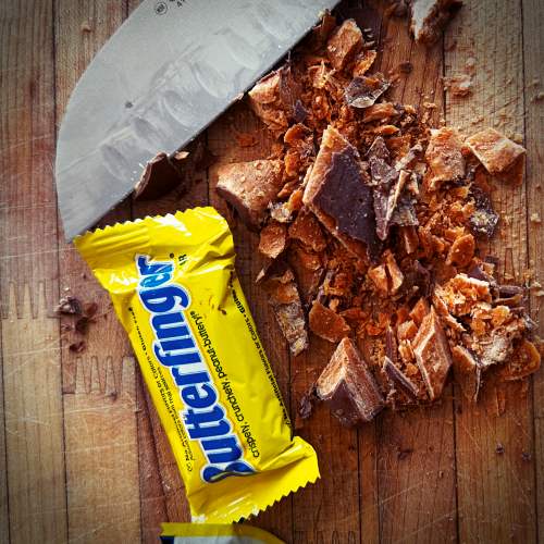 4 fun-size 3 Musketeers Bars, sliced - 8 fun-size Butterfinger Bars, crushed into chunks