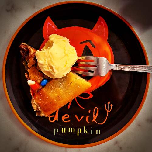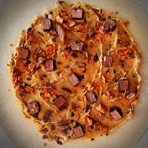 A nostalgic galette that eats like your favorite childhood chocolate chip cookie… but upgraded. Flaky gluten-free crust, nutty almond cream, and a gooey mix of Halloween candy bars, chocolate bites, and spooky sweets. Perfect for anytime indulgence, midnight raids, or a devilishly fun weekend treat.