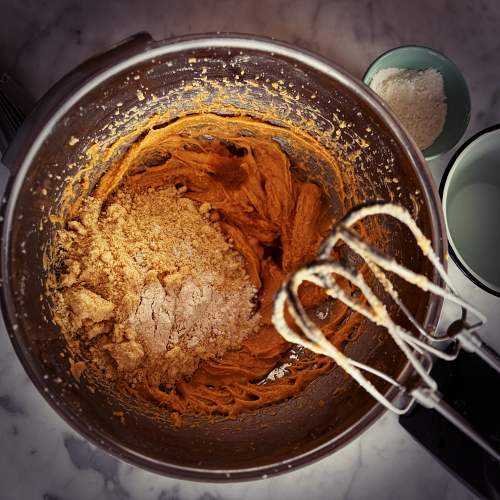 - Add eggs, almond flour, salt, gluten-free flour, and vanilla extract. Mix until smooth.