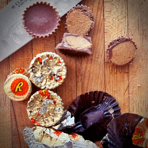 - 8 fun-size Reese’s Peanut Butter Cups, chopped