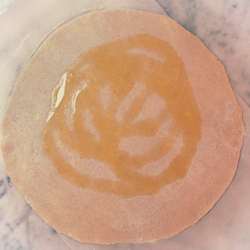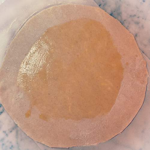 - Spread 1 Tbsp olive oil over the rolled out dough.
