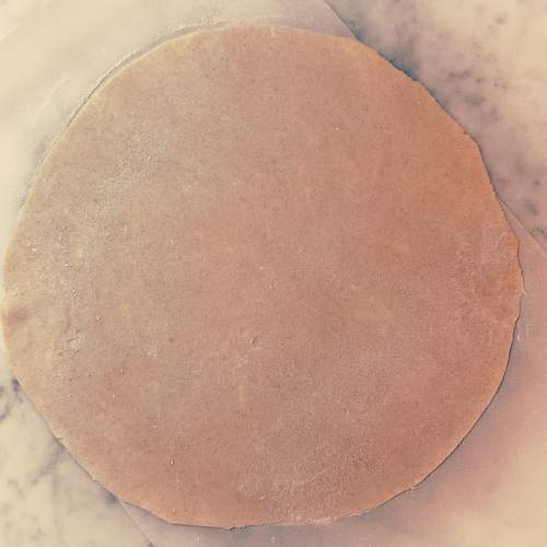 - Roll out to a thickness of 1/8" into a circle approximately 14” in diameter.